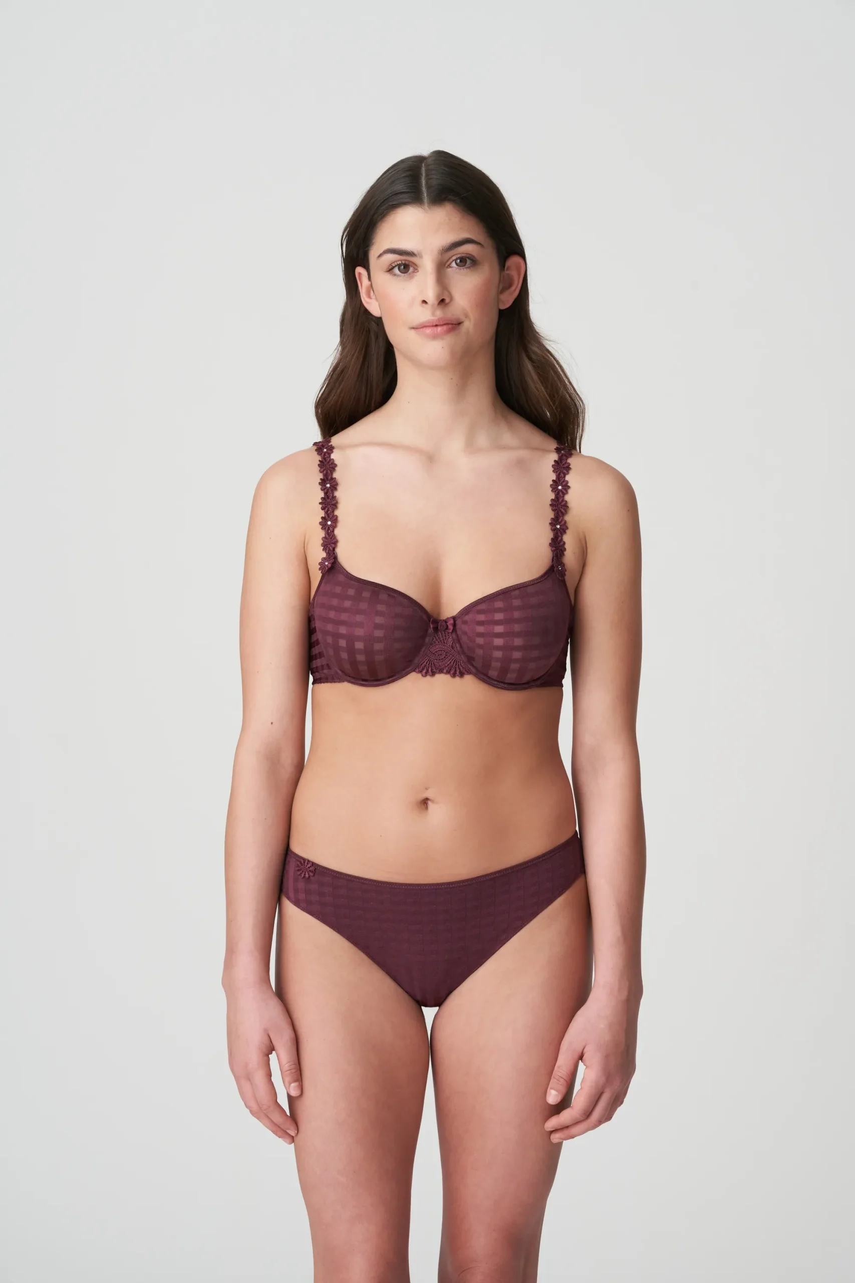 Een stijlvolle rioslip die subtiel versierd is met bloemenbroderie. Een dun bandje aan de billen zorgt ervoor dat de slip niet aftekent onder je kledij. De warme auberginekleur Wine combineer je zorgeloos met al je cosy winteroutfits.