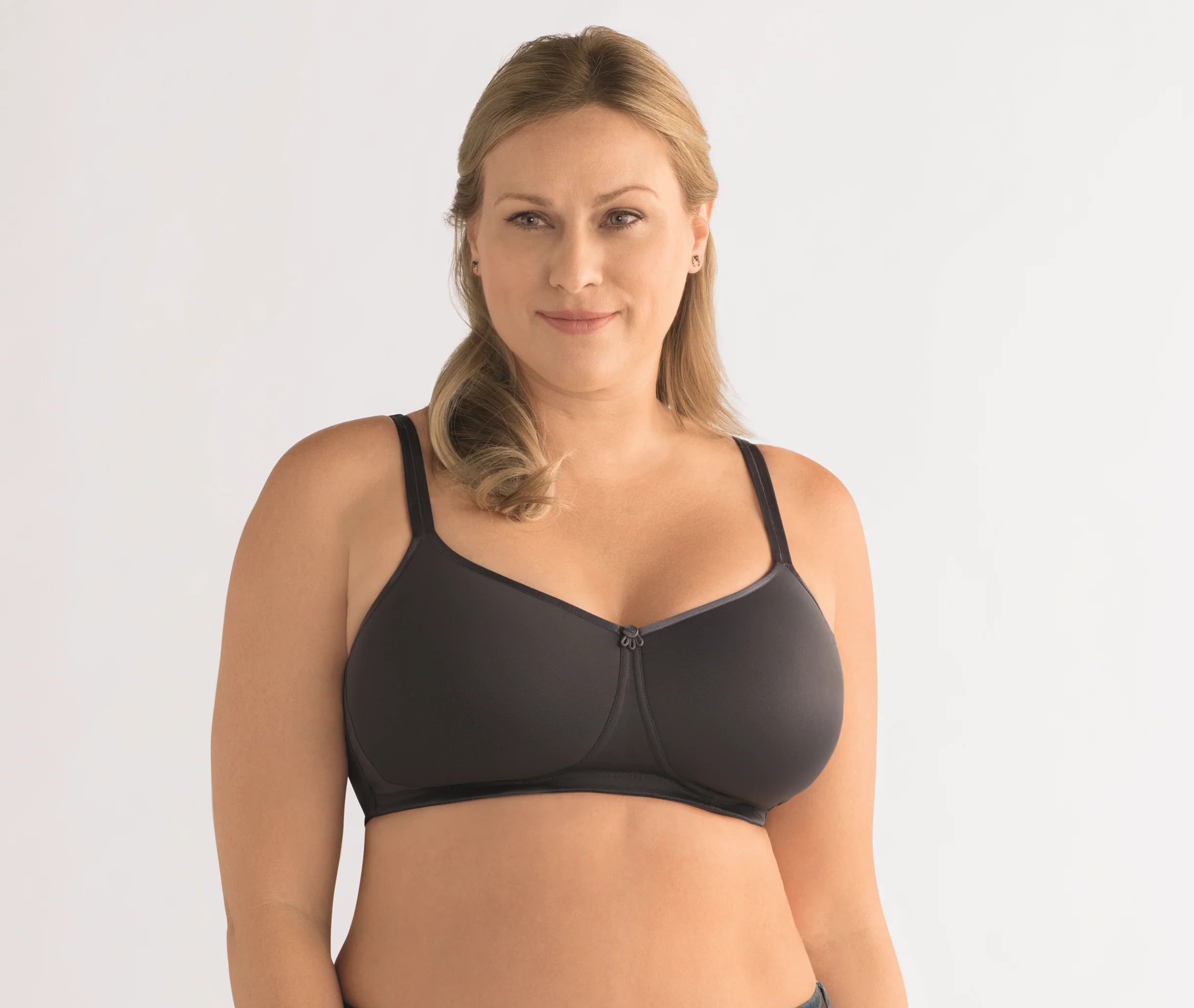Amoena Mara voorgevormde prothesebh zonder beugel in donkergrijs.
