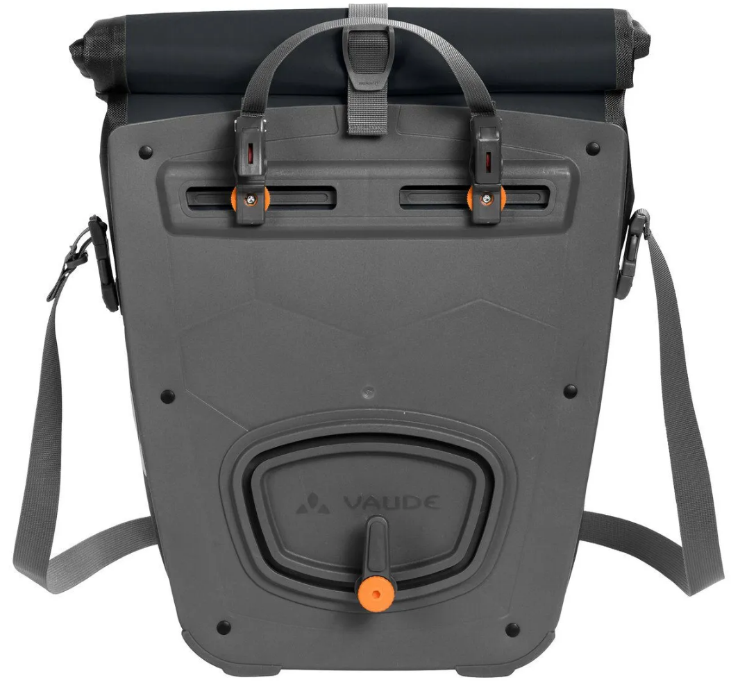 De Aqua Back Single is een achterfietstas van Vaude. Deze tas is zeer geschikt voor allerlei verschillende fietstochten. Van dagtochten tot lange fietsvakanties. De tas heeft een ruim hoofdvak, waarin gemakkelijk allerlei reisbenodigdheden meegenomen kunnen worden. De waterdichte rolsluiting is naar boven en naar onderen afsluitbaar, waardoor de inhoud van de tas gemakkelijk te bereiken is. Verder is de schouderband afneembaar en heeft de tas een reflecterend logo. Daarnaast heeft deze fietstas een QMR- (Quick Mount Release) Systeem, waarmee deze tas gemakkelijk aan de fiets te bevestigen is.