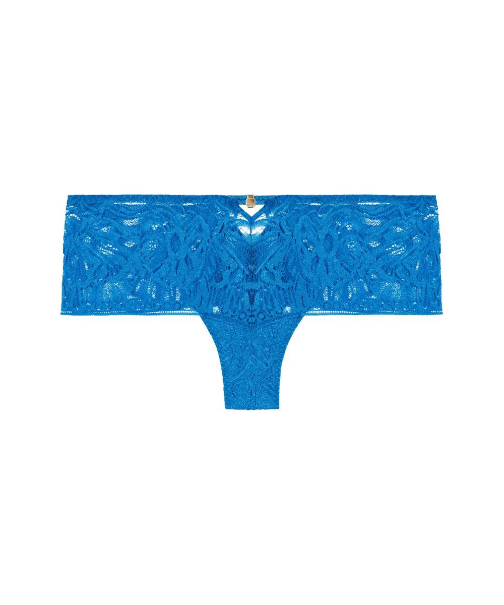 De Aubade Love Soul Cheeky Brief (stijlcode 4A70_AZUU) is het ultieme in comfort en verleiding. Deze short is ontworpen met een transparante look, waarbij het verfijnde bloemkant een luxe uitstraling geeft. Een delicat gouden charm benadrukt de taille, terwijl dunne bandage-achtige bandjes aan de achterkant het sensuele ontwerp completeren. De pasvorm is iets hoger uitgesneden op de billen, voor een verleidelijke en sexy uitstraling.