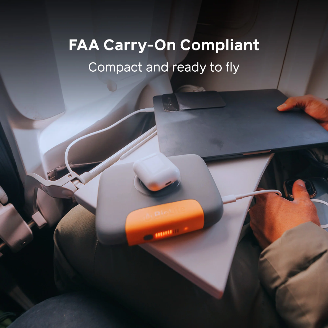 Deze powerbank heeft een groot vermogen dat het wel tot 5 apperaten te gelijk kan opladen. En kan als handbagage mee genomen worden in het vliegtuig.