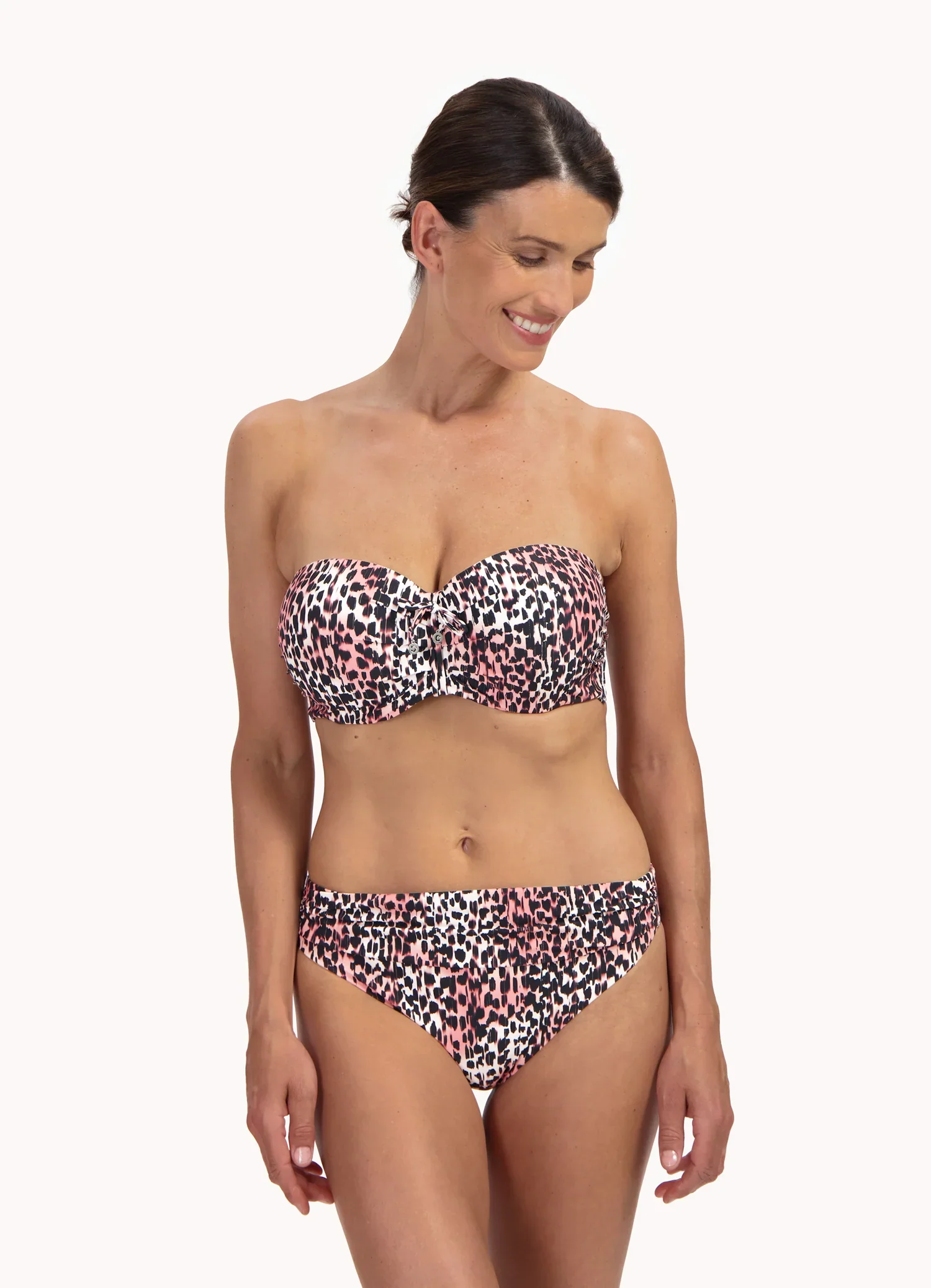 Bikinibroekje met plooitjes in de tailleband – bruin multicolor print