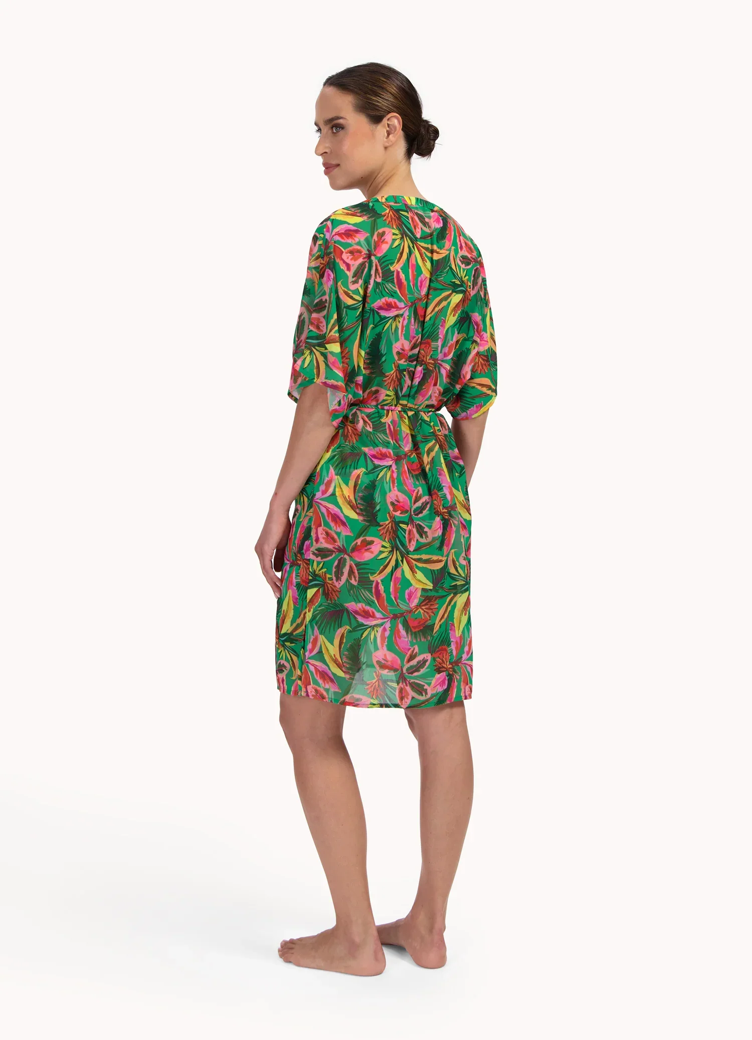 De groene basis met gekleurde print zorgt voor een frisse, zomerse look. Ideaal om te dragen over je bikini of badpak richting het strand of zwembad, maar ook leuk te combineren met een short of jeans voor een casual zomerse outfit. Gemaakt van 100% polyester, waardoor de stof licht aanvoelt en prettig draagt.