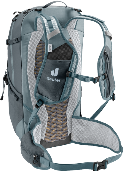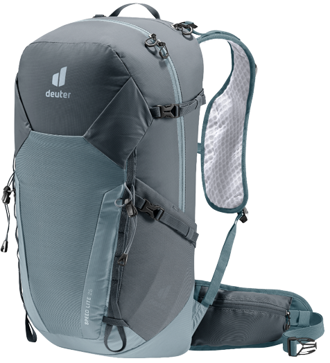 De Deuter Speed Lite rugzak is zeer licht en duurzaam door het beproefde Lite-draagsysteem, vestvormige, geperforeerde schouderbanden. Ook heeft deze rugzak nauwsluitende heupvinnen, traploos verstelbare borstband en is gemaakt van een 100% gerecycled hoofdmateriaal. De compressiebanden beperkt aan de zijkant de op- en neerwaardse bewegingen van de last tijdens het hartlopen. Hierdoor is de bewegingsvrijheid onbelemmerd. Ook heeft de rugazk een in de schouderriem geïntegreerde vak, dat voldoende ruimte biedt voor allerlei spullen. DE rugzak heeft straps om de belasting aan te passen en een elastische binnenvak voor natte kleding en andere dingen. Ook heeft het een drinksysteem van 3 liter.