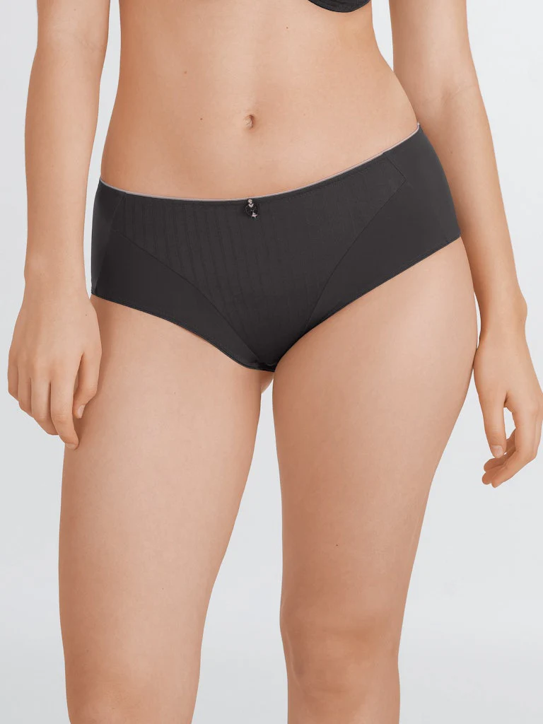 Elegante Felina dames slip in de tint obsidian grey uit de nieuwste serie Elementary. Deze slip komt tot in de taille, heeft een perfecte pasvorm en hoog draagcomfort. Perfect dames ondergoed voor elke dag met net dat beetje extra. Gemaakt van soepel en zacht materiaal: van 61% polyamide, 20% polyester, 14% elastaan, 5% katoen. Maak je set compleet met de bijpassende beugelbh uit de Elementary serie in dezelfde kleur donkergrijs