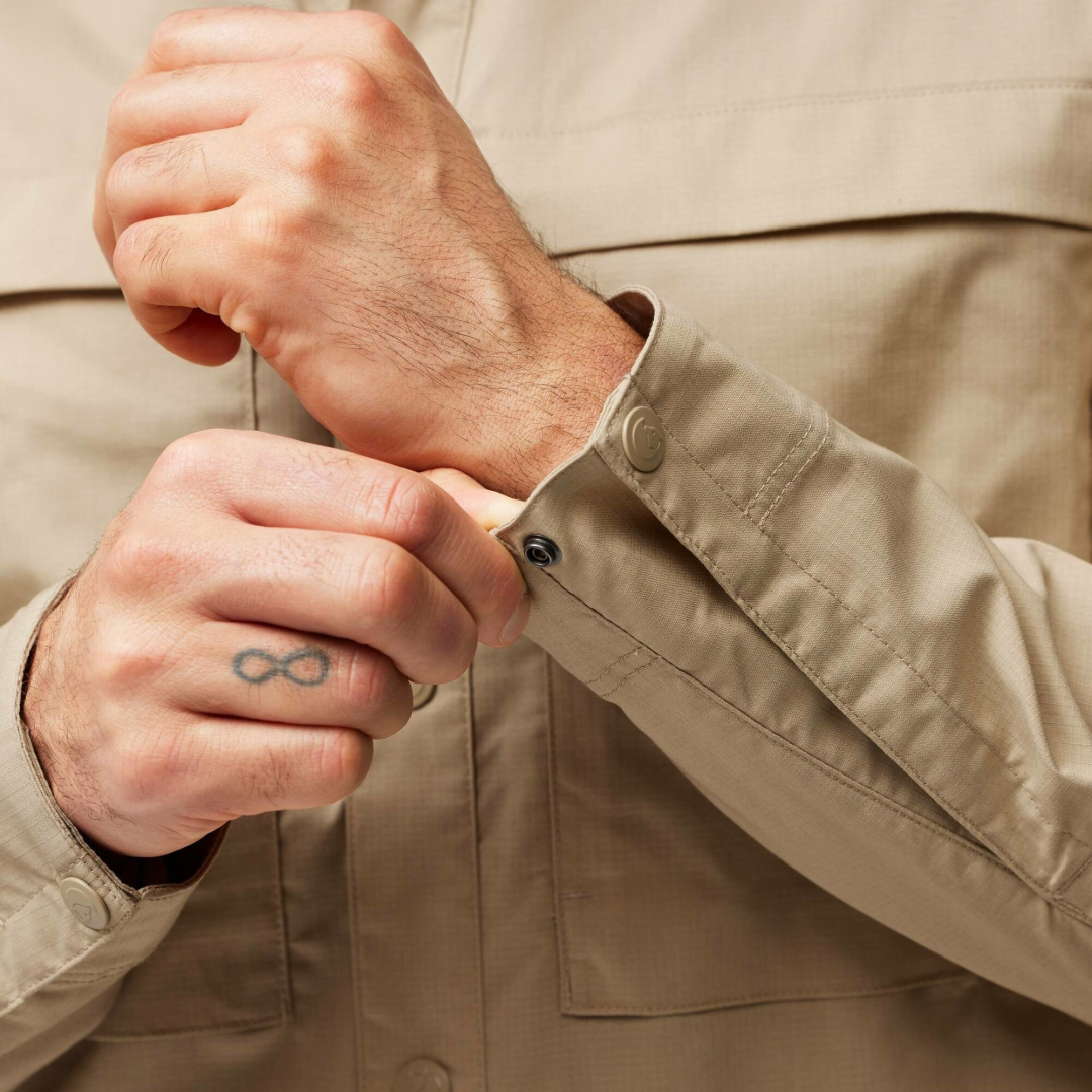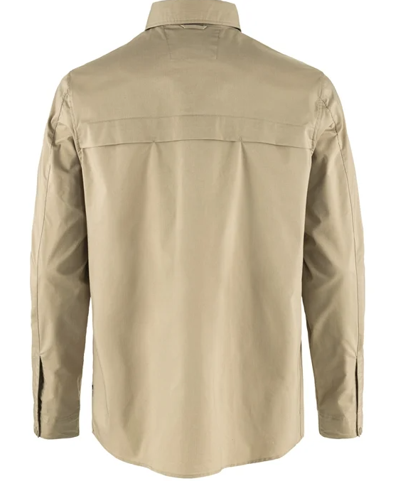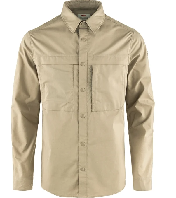 Het Abisko Trial Shirt van Fjallraven is een veelzijdig overhemd gemaakt van Fjallravens eigen G-1000 Air Stretch, een materiaal bestaande uit katoen en polyester. G-1000 Air Stretch is een technisch materiaal met als kern eigenschappen licht en luchtig, wat zorgt voor een goed geventileerd overhemd met veel bewegingsvrijheid. Daarnaast beschikt het Abisko Trail Shirt over ventilatieopeningen met mesh op de achterkant, wat de luchttoevoer vergroot. De kraag van het overhemd kan omhoog en worden vastgezet, dit biedt extra bescherming van je nek tegen de zon. G-1000 materiaal kan naar wens behandeld worden met Greenland Wax, dit maakt het kledingstuk waterafstotend, maar doet wel wat af aan het ademendvermogen. Tenslotte beschikt het overhemd over drie zakken, waaronder twee zakken met klep en een zak met rits.