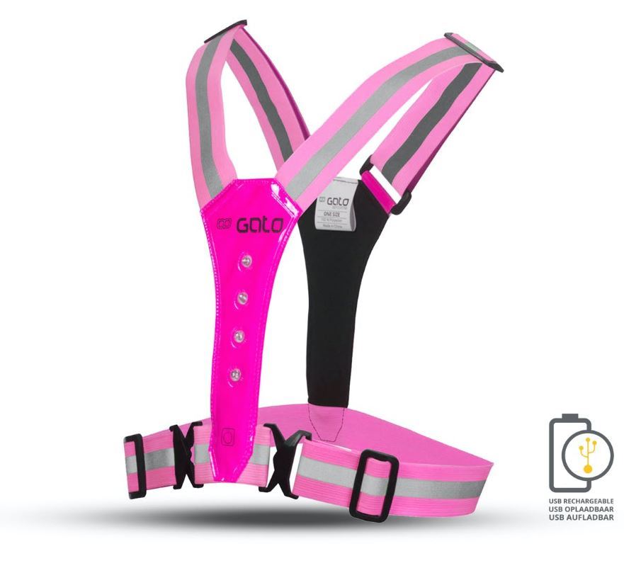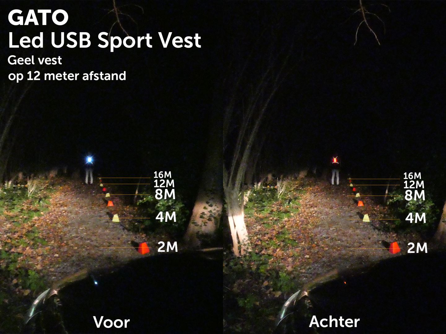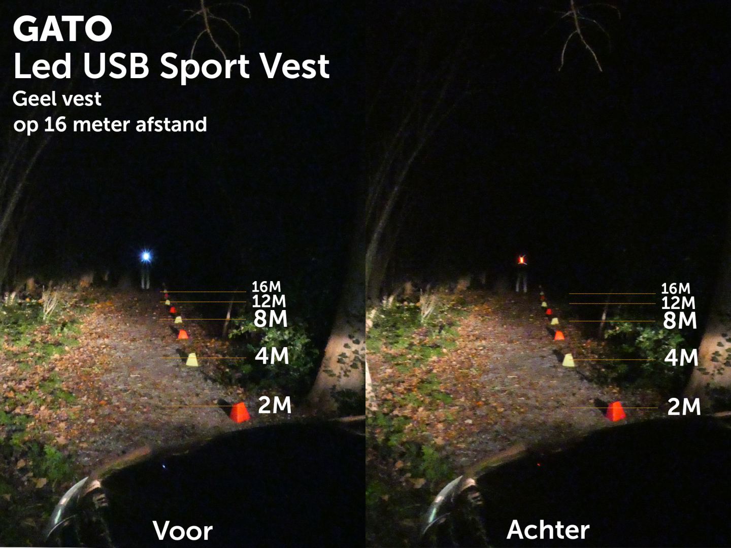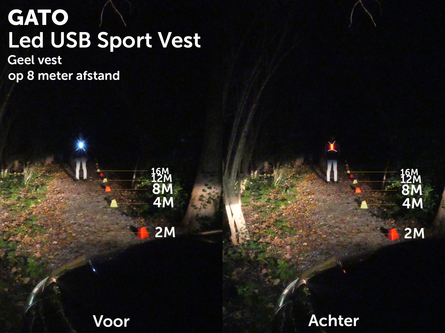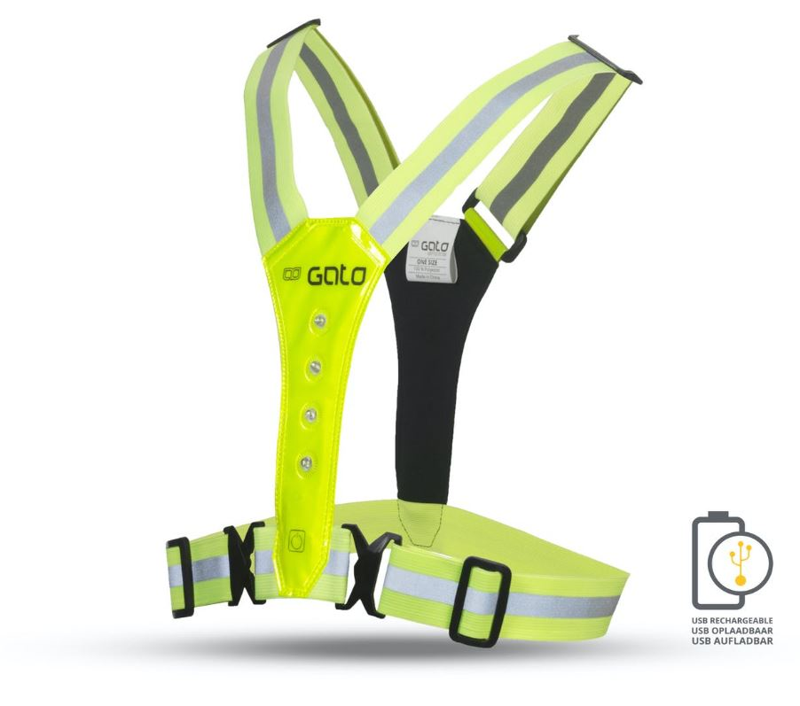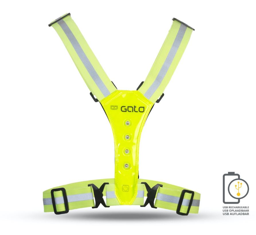 In totaal beschikt het vest over 8 LED-lampjes, 4 witte aan de voorzijde en 4 rode aan de achterzijde.