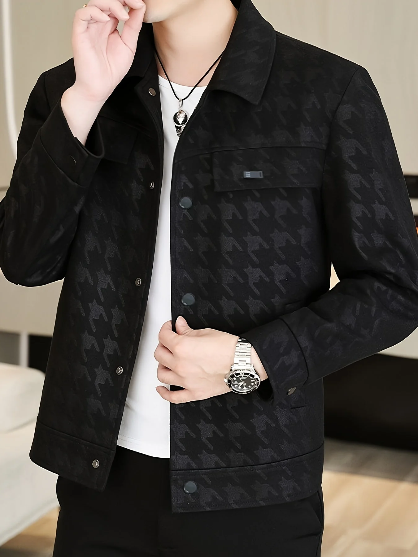 - Uiterlijke kenmerken: Klassiek pied-de-poule patroon dat elke outfit een chique touch geeft.