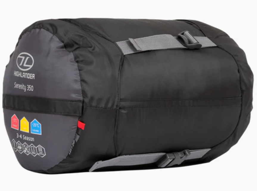 De Highlander Serenity 350 Mummy Charcoal slaapzak is een warme, comfortabele slaapzak voor koude temperaturen. Makkelijk mee te nemen.