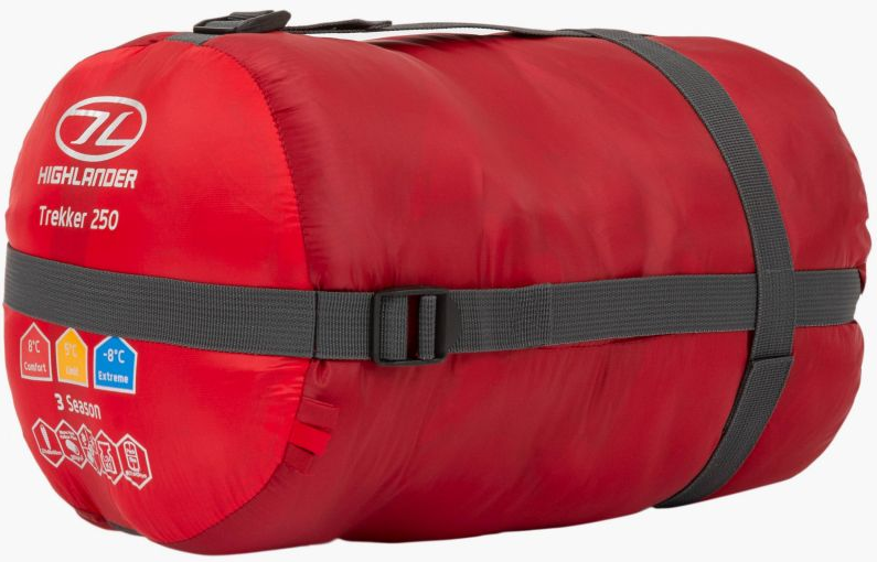 De Highlander Trekker 250 Sleeping Bag is luchtige slaapzak, gemaakt voor warmere nachten. De lichte holow fibre vulling zorgt ervoor dat u met de perfecte temperatuur kan slapen. Hiernaast beschikt de slaapzak ook nog over een ingebouwd muggennet. De rits zit centraal op het midden van de slaapzak, zodat hij ook goed te gebruiken is in o.a. een hangmat. Wanneer u onderweg bent kan de slaapzak compact worden opgeborgen in een stuffsack.