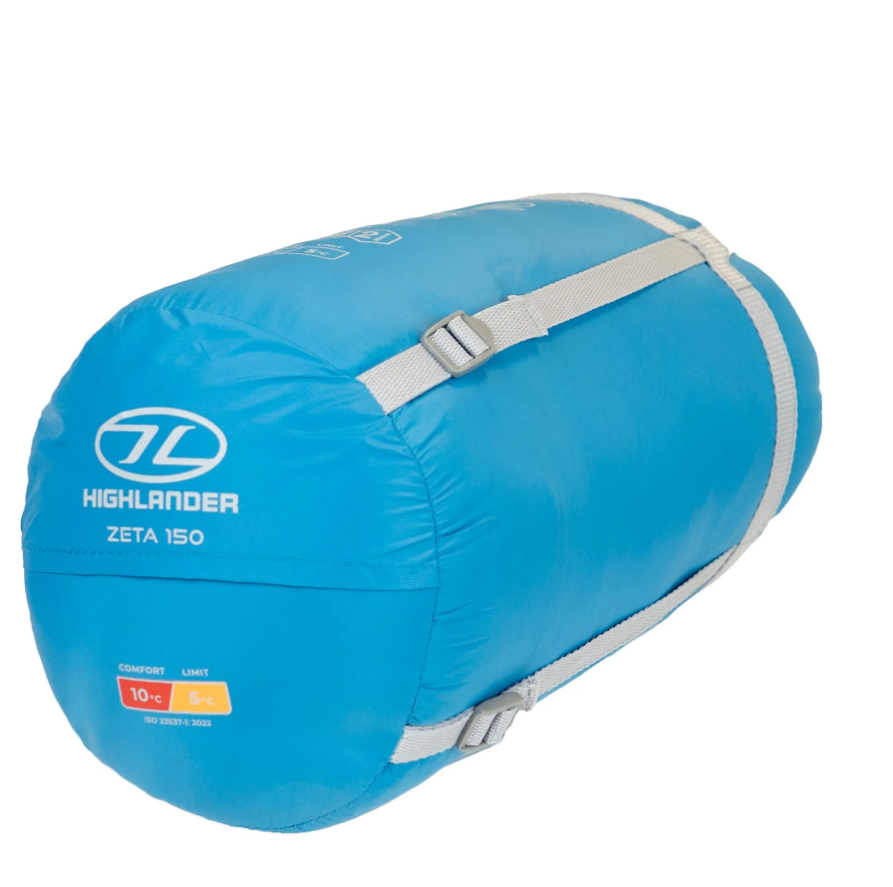 De Highlander Zeta 150 slaapzak is ontwikkeld voor warme nachten in de zomer. Hij houdt u namelijk koel en droog in de zomer. De slaapzak heeft een mummy ontwerp, met over de volledige lengte een 2-weg rits.