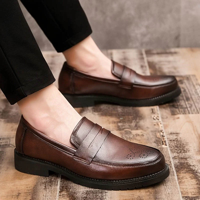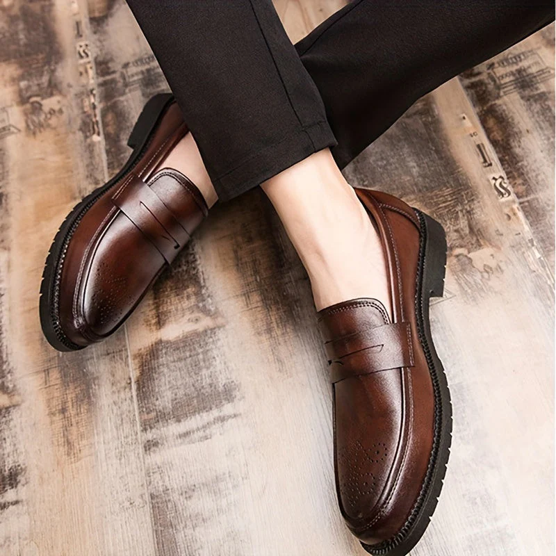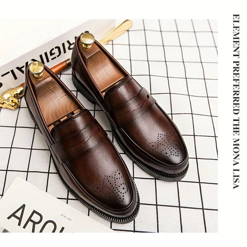 Stap met stijl en verfijning het kantoor binnen of vier een speciale gelegenheid in de Jasper heren Penny Loafers met brogue details. Deze tijdloze loafers bieden duurzaamheid en een klassieke uitstraling met hun PU-lederen bovenwerk. De slijtvaste eigenschappen zorgen voor comfort en betrouwbaarheid, terwijl het instapontwerp het gemak van aantrekken biedt. Of het nu gaat om een zakelijke bijeenkomst of een bruiloftsfeest, de Jasper loafers zijn de perfecte keuze voor mannen die een combinatie van klassieke stijl en ultiem comfort zoeken.