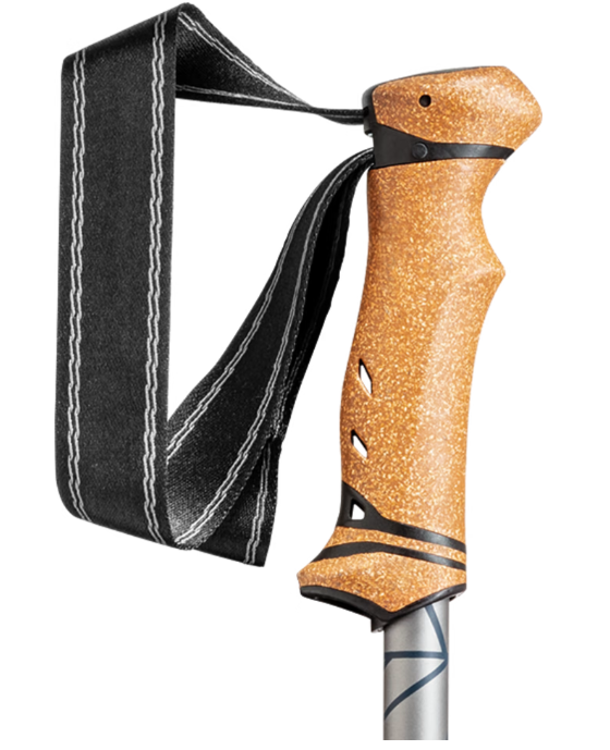 De handvaten van de Leki wandelstok zijn ontworpen met een comfortabele grip die zorgt voor een stevige houvast tijdens het wandelen. Ze zijn uitgerust met een ergonomische strap die de hand goed ondersteunt en voorkomt dat de stok uit de hand glijdt. De grip reikt verder naar beneden, wat extra grip biedt bij steile hellingen of onregelmatige ondergronden. Dit betekent dat je meer controle hebt over de wandelstok, wat de algehele stabiliteit en veiligheid tijdens het wandelen verbetert. Deze kenmerken maken de handvaten ideaal voor lange wandelingen en uitdagende terreinen.