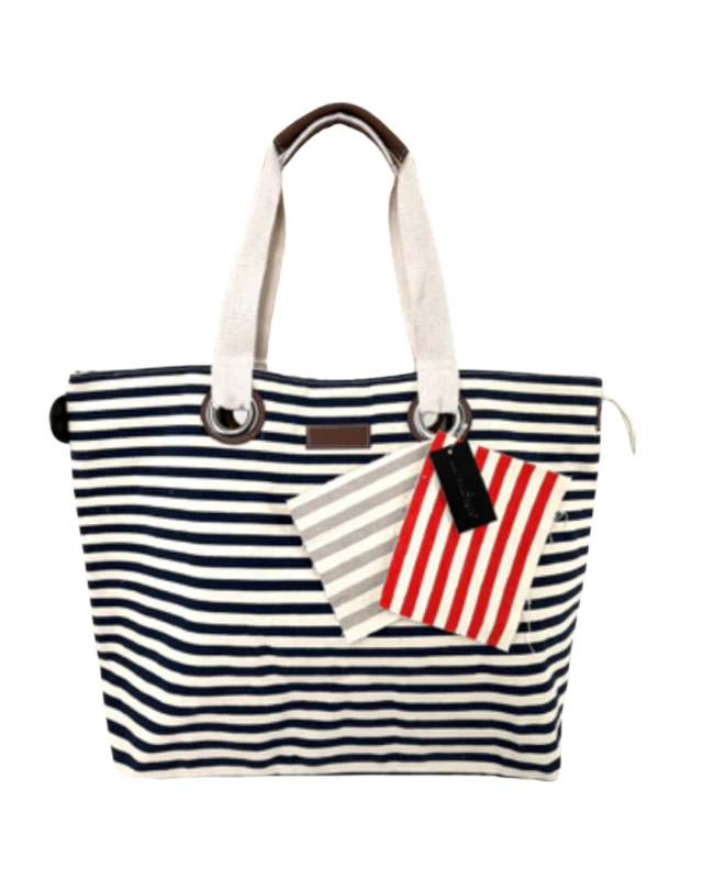 De Badetasche Sailor is een ruime en stijlvolle tas, perfect voor een dagje strand, zwembad of sauna. Dankzij het royale formaat is er genoeg plek voor al je zomerse essentials, van handdoeken tot zonnebrandcrème. Het maritieme ontwerp in blauw en wit sluit perfect aan bij de trends van het seizoen en voegt een elegante touch toe aan je zomerlook.