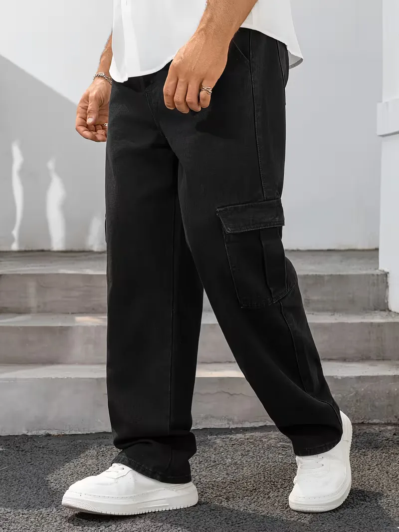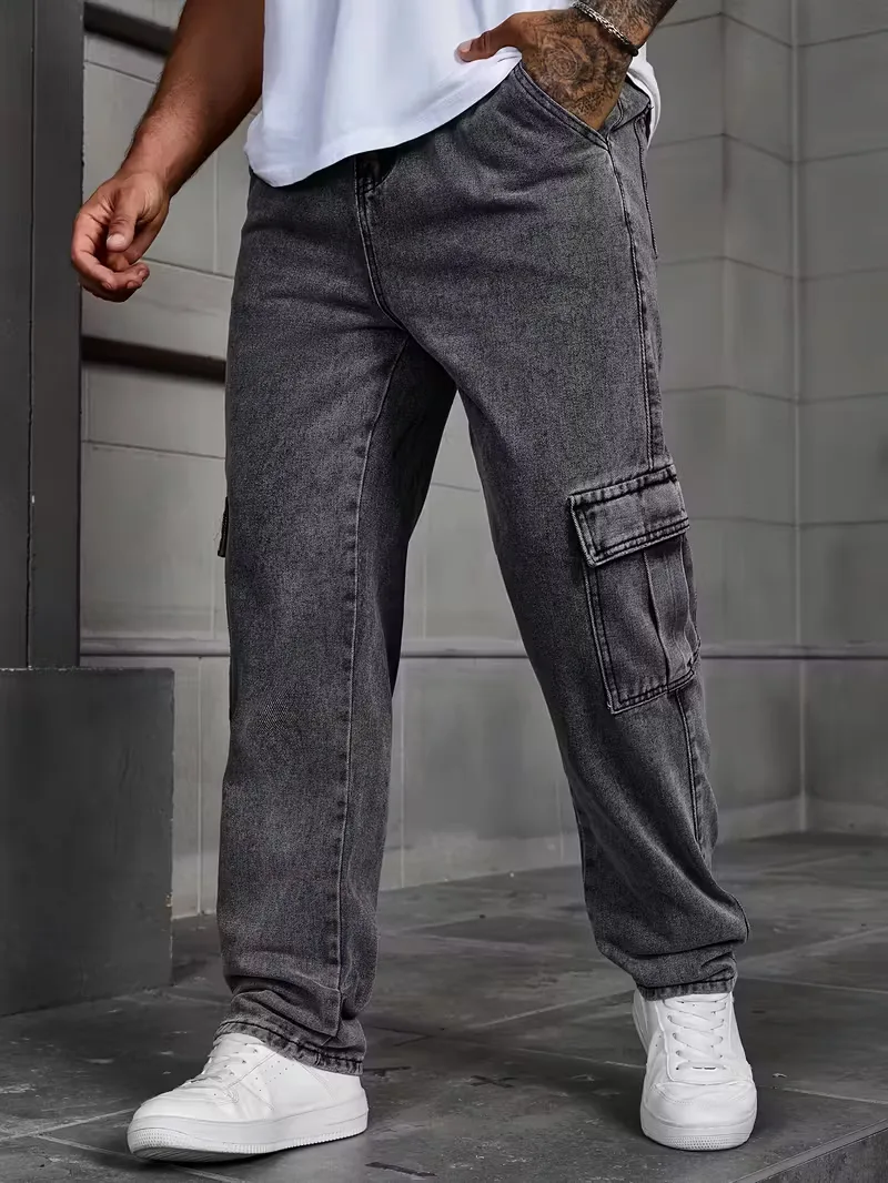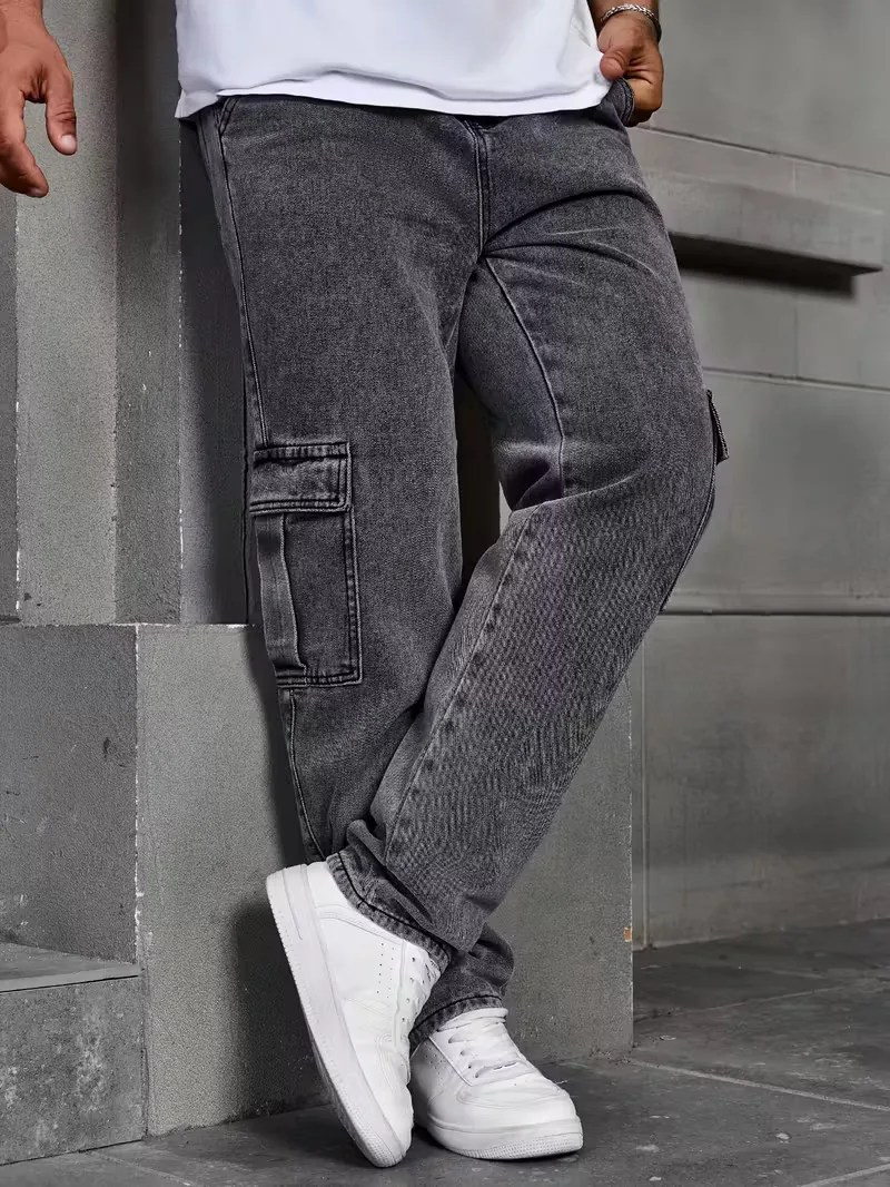 Deze loose fit broek heren is gemaakt van zacht denim en heeft een comfortabele, rechte pasvorm. De cargo zakken aan de zijkanten bieden extra functionaliteit, terwijl de elastische tailleband met rits en knoopsluiting zorgt voor een flexibele en stevige fit. De lichte wassing geeft de broek een subtiele vintage uitstraling, ideaal voor een casual en ontspannen look.