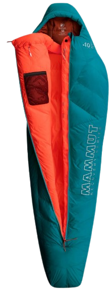 Het ontwerp van de Mammut Perform Down Bag -10C damesslaapzak is gebaseerd op een natuurlijke slaaphouding voor voldoende ruimte. Het hoofdgedeelte is gemaakt van een speciaal materiaal dat irriterende ritselende geluiden tegenhoud voor een rustige slaap. De slaapzak heeft een centrale ritssluiting voor optimale klimaatregelingen. Ook is de capuchon gemaakt van een comfortabel en zacht materiaal wat het geluid verlaagd en verhoogd het comfort. De slaapzak wordt geleverd inclusief diep slaapmasker en oordopjes om licht en geluid te verminderen. Ook heeft deze slaapzak een gebruiksvriendelijke magneetsluiting op de isolatiekraag en het heeft een verbeterde YKK-ritssluiting dat het vastlopen van materiaal voorkomt. De geïsoleerde afdekking langs de rits is er om te beschermen tegen koudebruggen en om het klimaatcomfort te verbeteren. Ook is er een isolatie kamer rond de opening van de kap om te beschermen tegen kou en wind. In de slaapzak zit een binnenzak om waardevolle spullen op te bergen. DE slaapzak bevat een trekkoord voor eenvoudige aanpassing van de capuchon en isolatiekraag en het heeft een anatomische voetensteun voor meer comfort zonder extra gewicht. De slaapzak heeft ook een ritsgarage dat koude plekken aan het einde van de rits verminderd. De slaapzak wordt geleverd meteen pakzak.