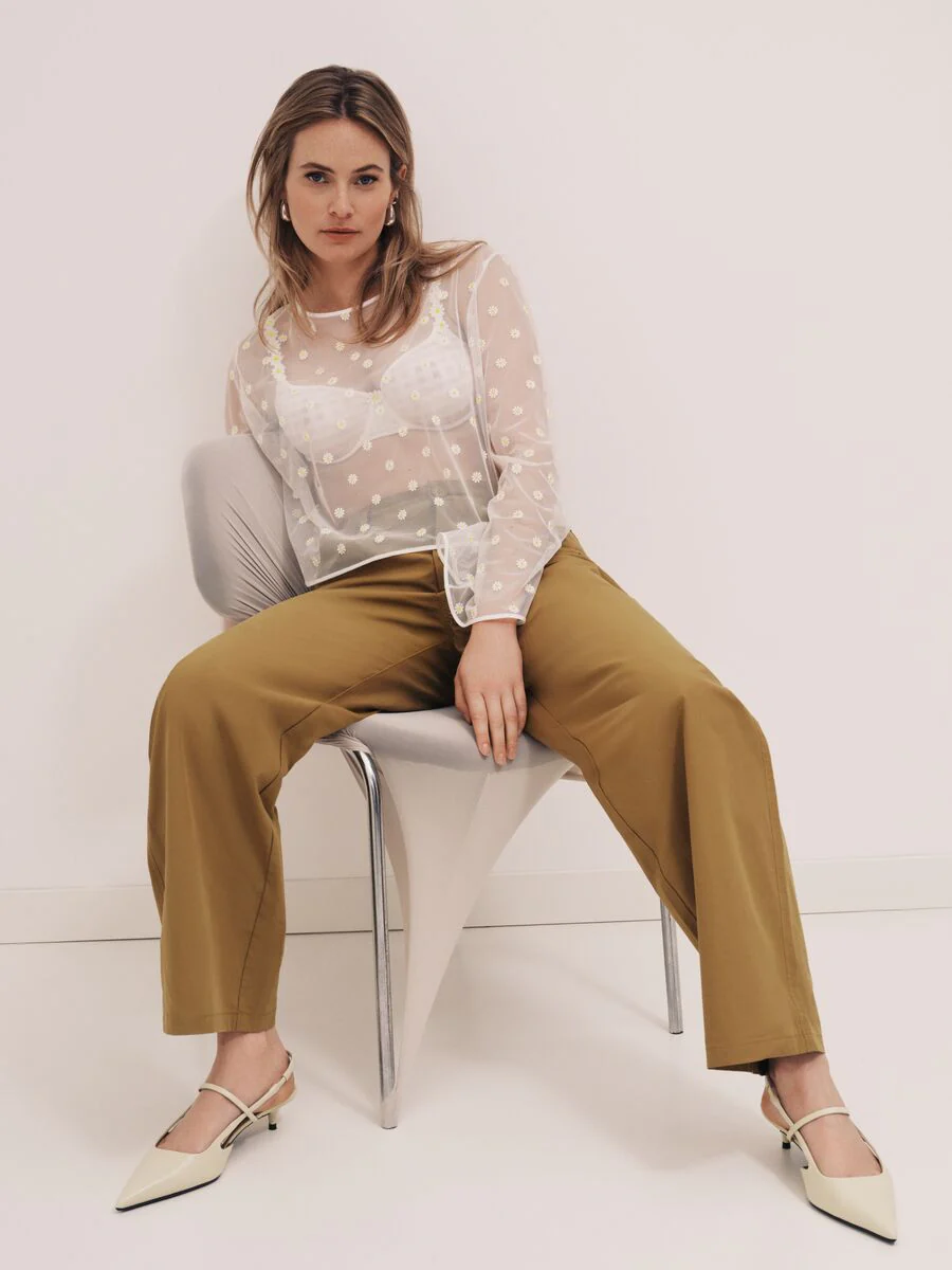 Het off-white topje met gele highlights uit de Marie Jo Avero lijn combineert een legendarische pasvorm met verfijnde details zoals de fijne bloemenbandjes. Het topje is zonder cups, waardoor het ideaal is voor een luchtige, natuurlijke look of als basis.