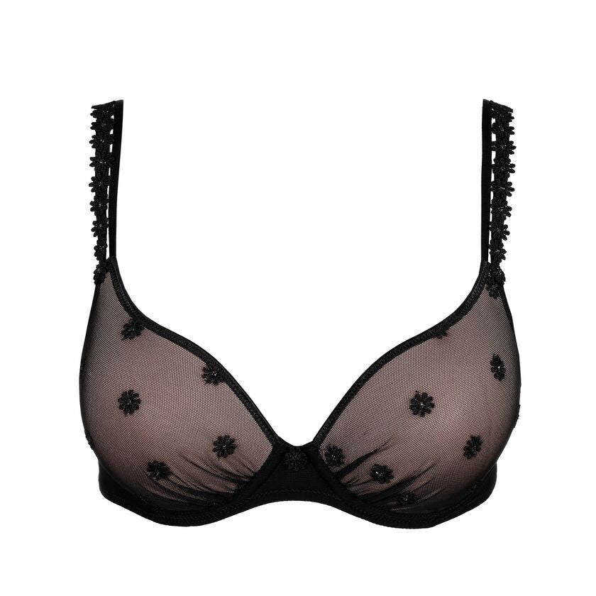 Elegante en comfortabele voorgevormde bh met beugel uit de Marie Jo Daisy collectie. Het stijlvolle, niet-transparante design is afgewerkt met luxe bloemenguipure en zichtbare schouderbandjes voor een iconische, sexy look. De hartvormige cups zorgen voor een mooie, natuurlijke belijning en optimaal draagcomfort. Perfect voor elke dag met een verfijnde uitstraling.