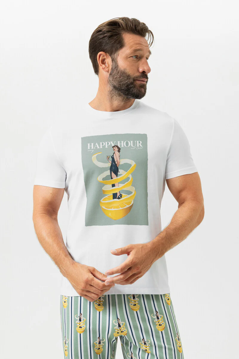 Het T-shirt uit de serie Fizz & Flavours overtuigt met een moderne print en een hoog comfortgehalte. De hoogwaardige katoenkwaliteit met elastaan voelt aangenaam zacht aan op de huid en zorgt voor een comfortabele pasvorm. Frisse citroenprint, zomerse look en hoog draagcomfort: de serie Fizz & Flavours staat voor lichte, comfortabele loungewear met een feelgoodfactor. De tops zijn Oeko-Tex® Standard 100 en GOTS-gecertificeerd. Met dit product kiest u bewust voor textiel dat is getest op schadelijke stoffen.