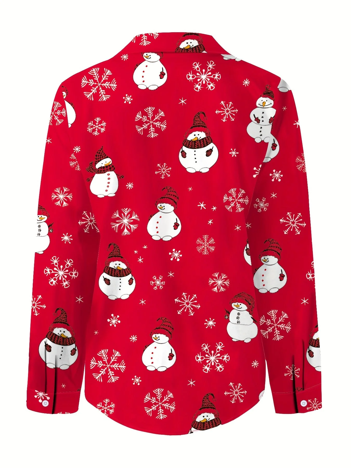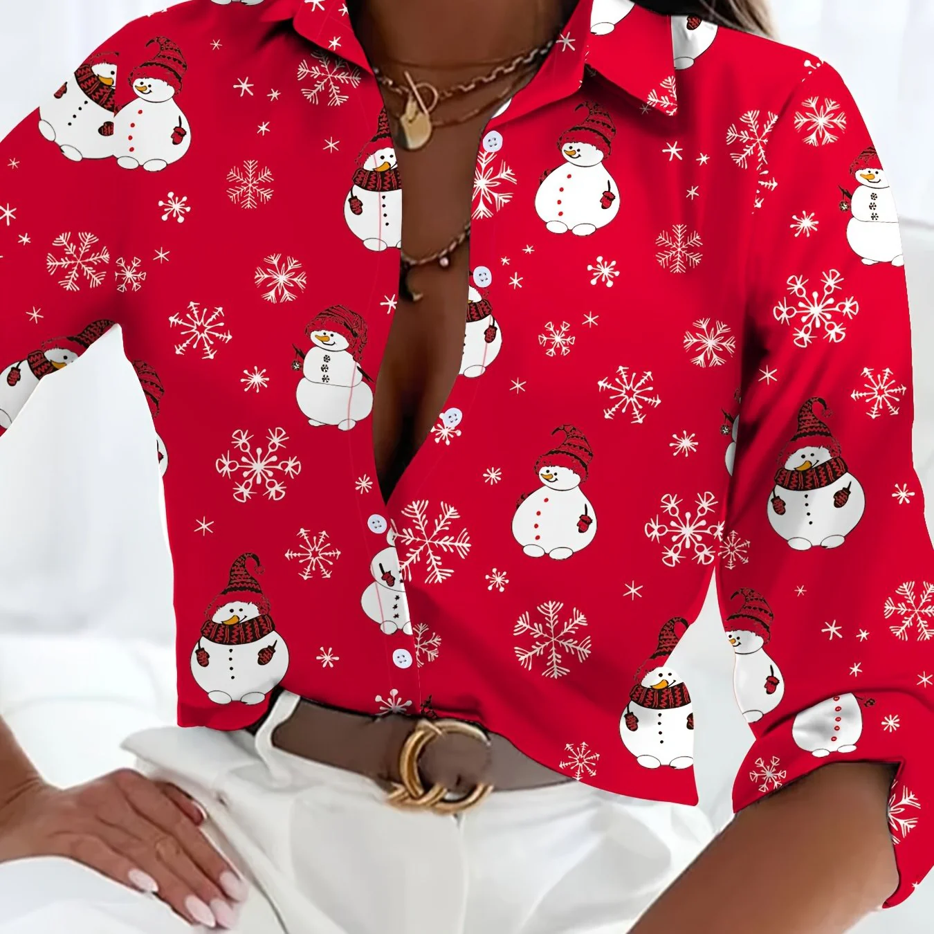 De Nina schattige kerst sneeuwman print blouse met lange mouwen is de perfecte keuze voor de feestdagen. Deze blouse voegt een speelse en feestelijke touch toe aan je wintergarderobe.