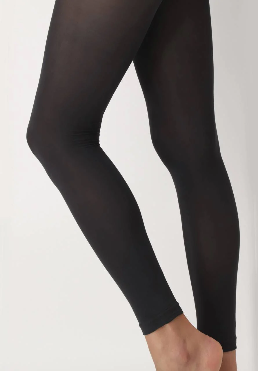 Dekkende legging in 50 denier met een lichte, subtiele glans. Gemaakt in 3D technologie en daardoor super-elastisch. De legging heeft platte naden en een polyamide kruisje.
