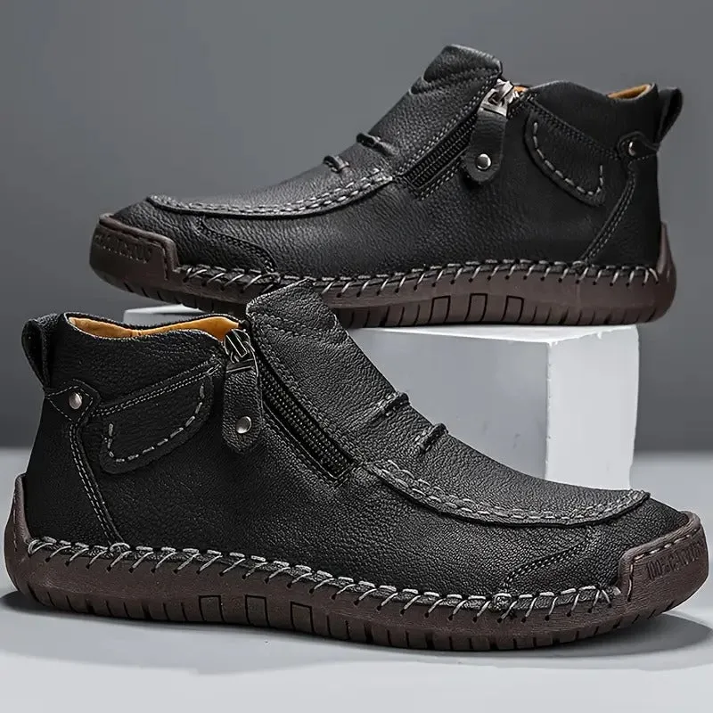 Leren schoenen met een gladde afwerking en zijrits combineren een soepel leren bovenwerk met een flexibele rubberen zool voor extra grip. De gestikte rand en lage schacht zorgen voor een casual uitstraling, terwijl de flap met drukknoop en lichte voering bijdragen aan comfort en gebruiksgemak bij dagelijks dragen.