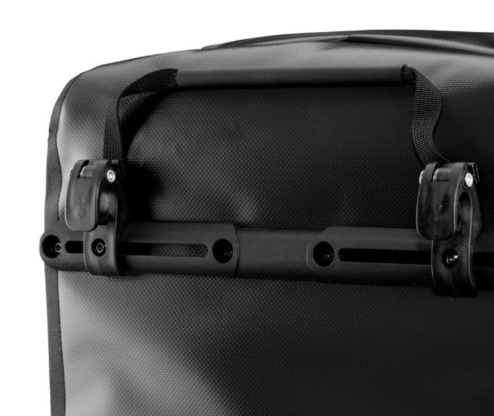 De Back-Roller City van Ortlieb is een handige fietstas geschikt voor zowel langere fietstochten als een kortere tocht. Deze polyester fietstas wordt in een set van 2 geleverd en is gemakkelijk te bevestigen met behulp van het Quick-Lock1-systeem. De Back-Roller City is waterdicht en beschikt over reflectoren zodat u altijd op uw fietstas kunt rekenen! Mocht u aan deze 2 fietstassen nog niet genoeg hebben, kunt u door de gleuven aan de fietstas nog extra fietstassen van Ortlieb bevestigen. Voor gebruik is het wel van belang de Quick-Lock-haakafstand in te stellen met een inbussleutel.