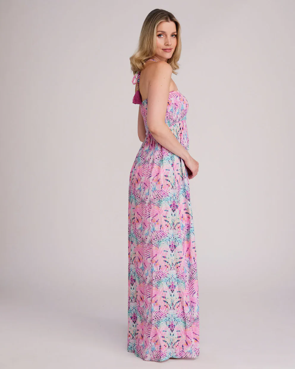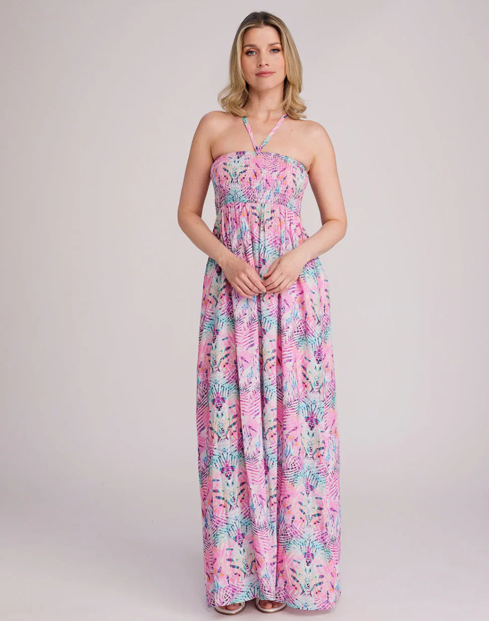 De Barbados Deep Pink Printed Bardot Maxi Jurk is een echte blikvanger voor een moeiteloze zomerse look. Gemaakt van 100% lichtgewicht rayon, voelt deze jurk heerlijk luchtig en comfortabel aan tijdens warme dagen.