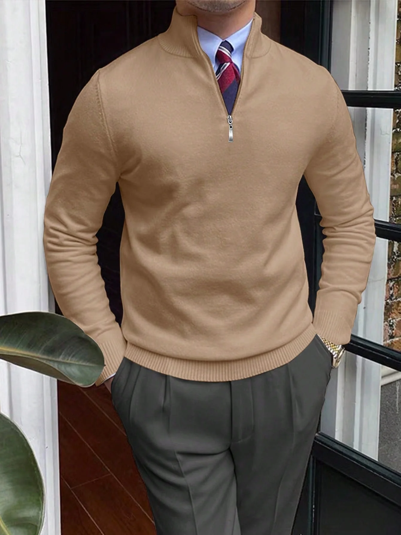 - Stijlkenmerken: Voorzien van een elegante kraag en lange mouwen, met een subtiele rits voor een moderne touch.