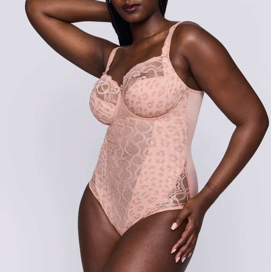 Volle cup bh met een beugel en een stevige dubbeling. Deze snit bedekt je borsten comfortabel. Vintage roze met glanzende print.