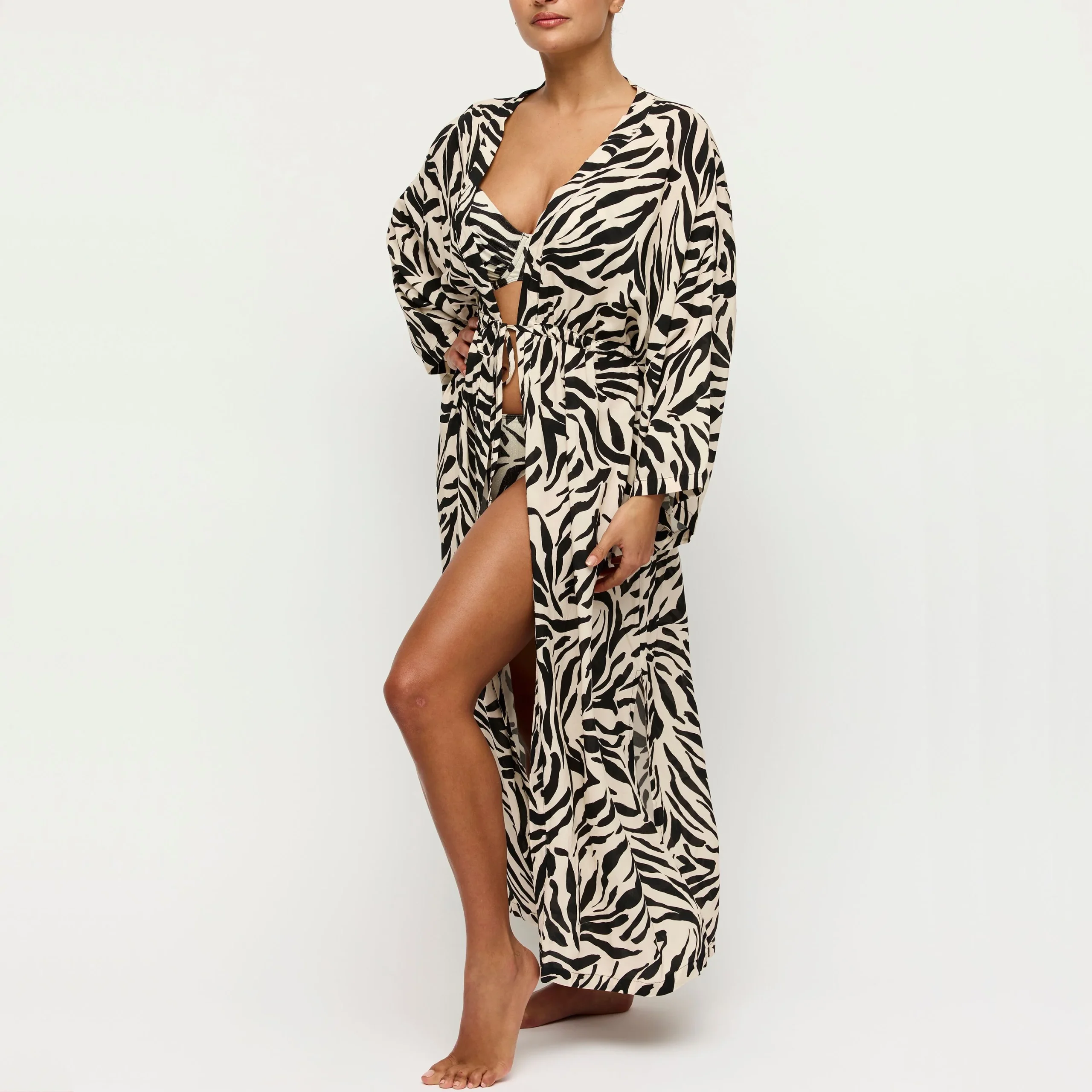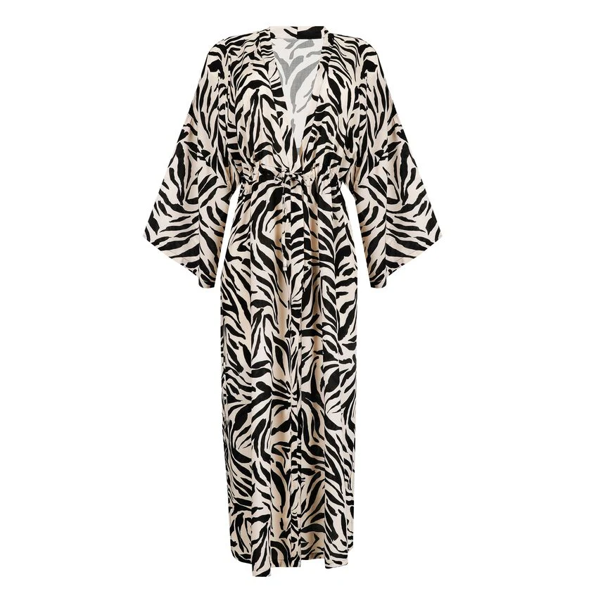 Een stijlvolle en luxueuze kimono die je strandoutfit een elegante en ontspannen uitstraling geeft.