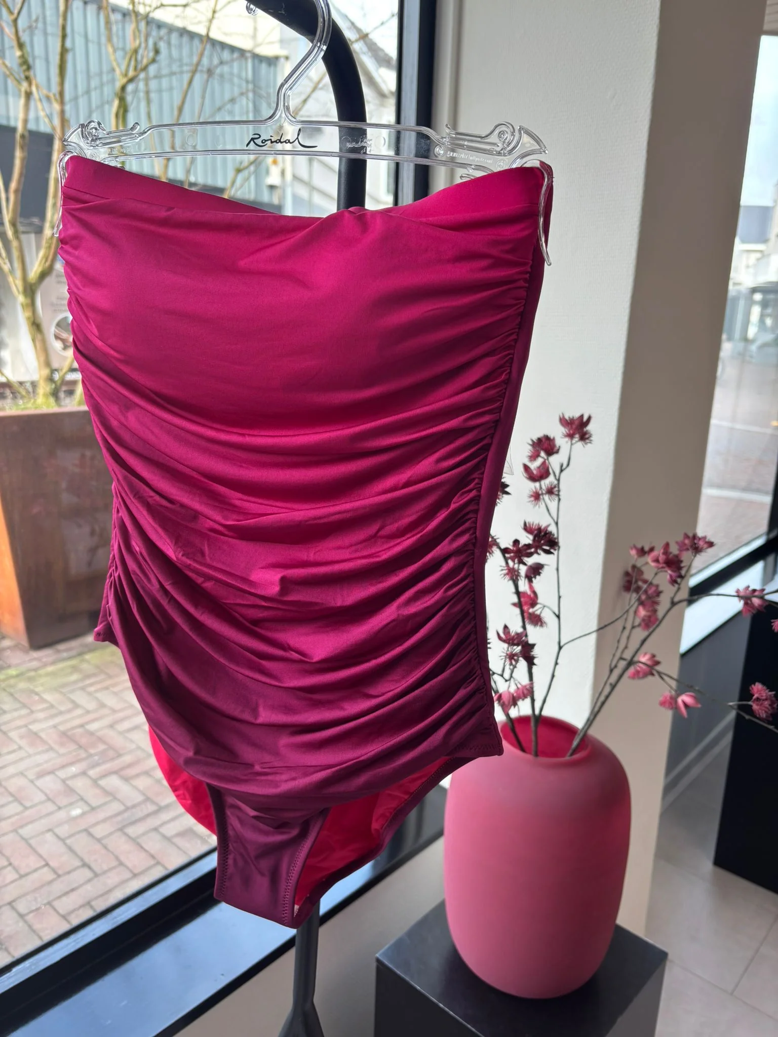 Stralend de zomer in met het Roidal Strapless Badpak Nadia uit de Brasil Touch collectie. Dit elegante badpak heeft een strapless design met softcups, een elastische band onder de cups en baleintjes in de zijnaad voor extra steun. Een halterband wordt meegeleverd voor veelzijdig draagcomfort.