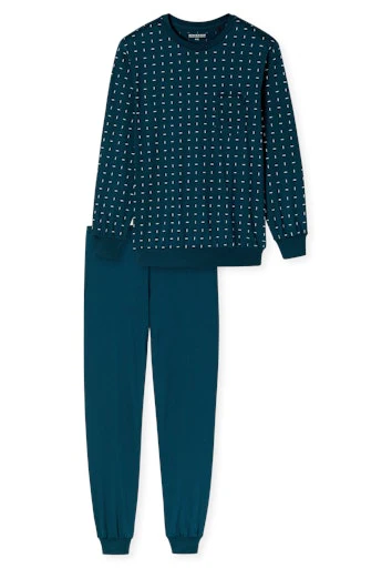 Schiesser Comfort Essentials Heren Lange Pyjama – Petrol Patroon – 181156-811