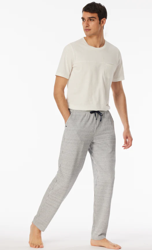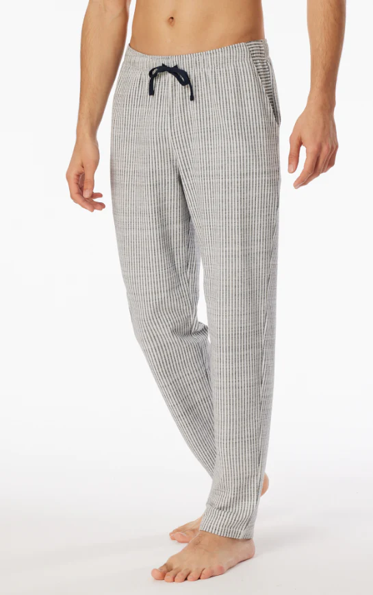 Deze long lounge pants voor heren in midnight blue met witte strepen zijn van de populaire SCHIESSER Mix+Relax lijn. Gemaakt van hoogwaardig single jersey jacquard met 95% biologisch katoen en een vleugje elastaan voor extra stretch.
