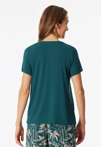 Dit groene shirt uit de Schiesser Mix+ Relax-serie combineert comfort en een moderne look. Het shirt is gemaakt van zacht, elastisch Single Jersey-materiaal dat extra bewegingsvrijheid biedt. De V-hals en slanke snit maken het tot een veelzijdige basic voor zowel dagelijks gebruik als ontspanning thuis.