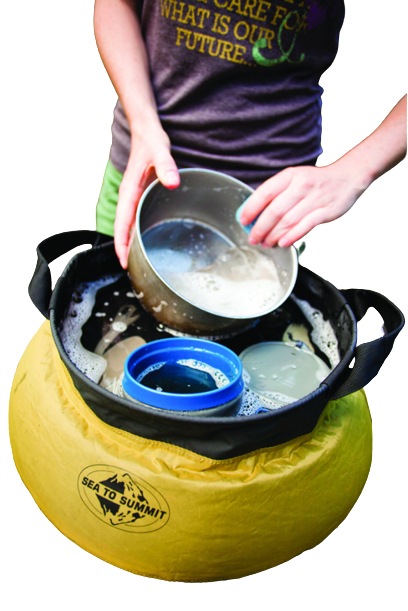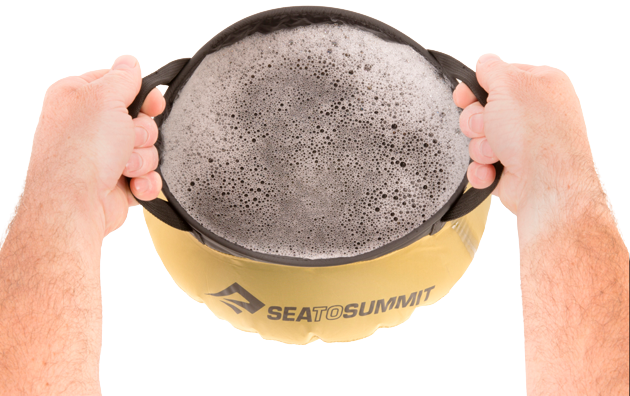 De outdoordachte opvouwbare wasbak voor de vaat, het wassen van kleding, persoonlijke hygiëne, voor uw hond als drink- of voerbak, als waterdrager, etc.