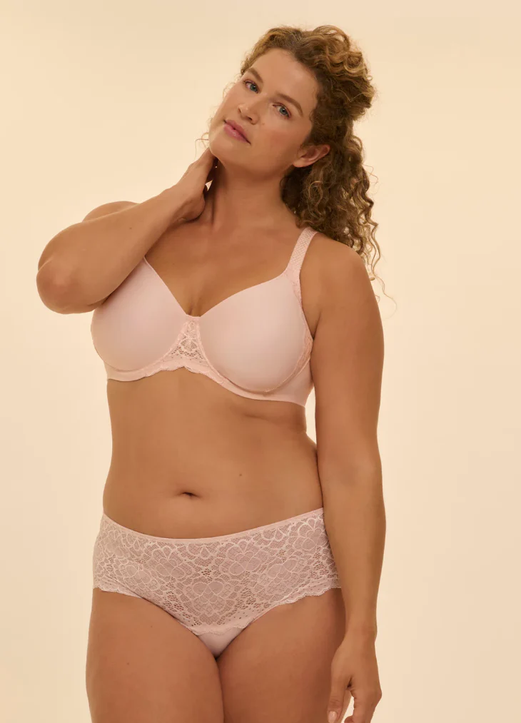 Zachte en sensuele boyshort in typisch Franse chic-stijl. De mid-rise pasvorm omhult de rondingen naadloos dankzij de ultrazachte stretchkant met gehaakte randjes, terwijl de microfiber voor- en achterkant met katoenen kruisje extra comfort biedt. Subtiele glans in het kant geeft een elegante, verfijnde afwerking. Perfect te combineren met de Caresse 3D Plunge bh of andere Caresse slips.
