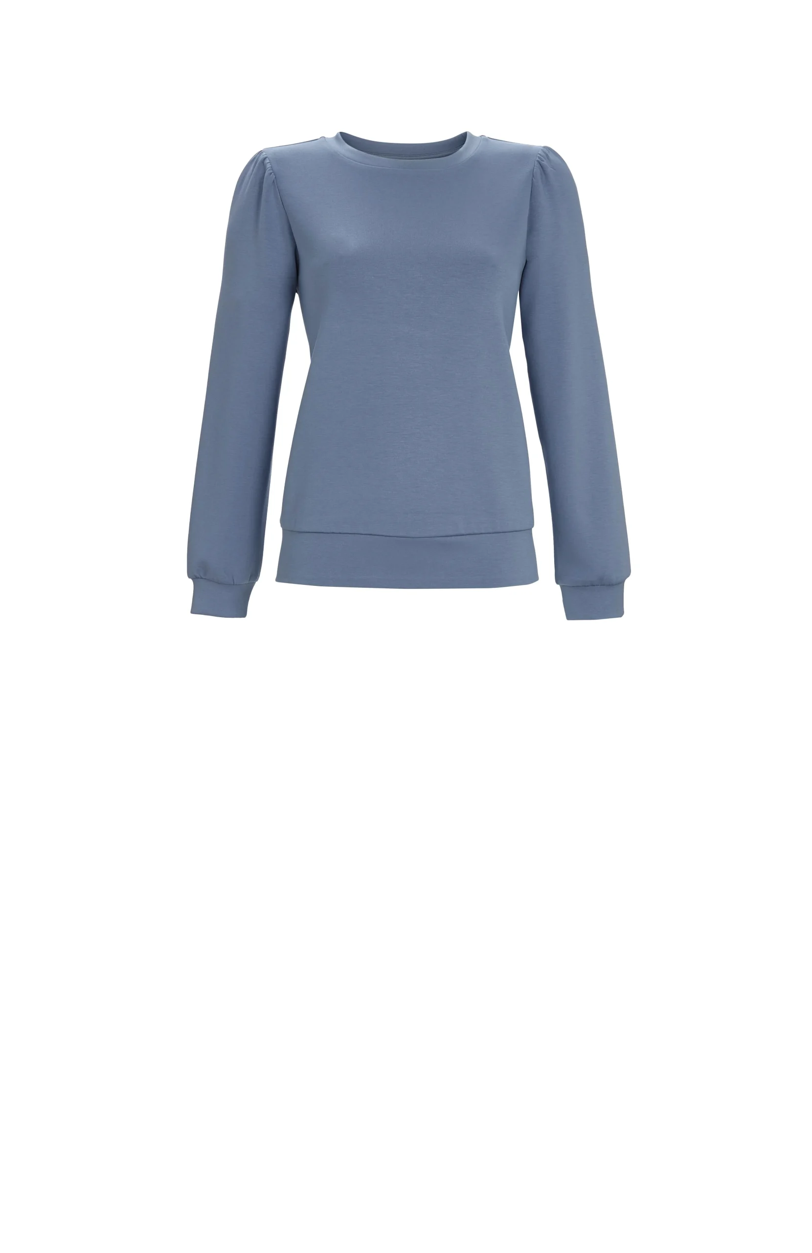 De Solo Per Me trui in stonewash is een stijlvolle en comfortabele keuze voor dagelijks gebruik. De licht gerimpelde mouwen geven de trui een modieus accent, terwijl de zachte stof zorgt voor een aangenaam draagcomfort. Perfect om casual te dragen of te combineren in een laagjeslook.