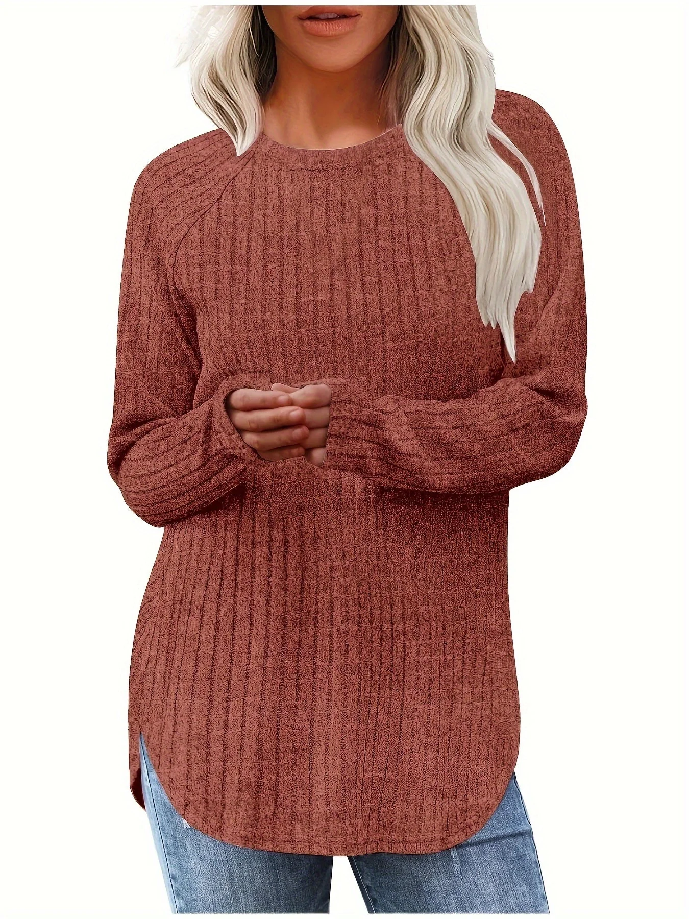 - Stijlkenmerken: Effen kleur met een elegante ronde hals en geribbelde textuur voor een verfijnde look.