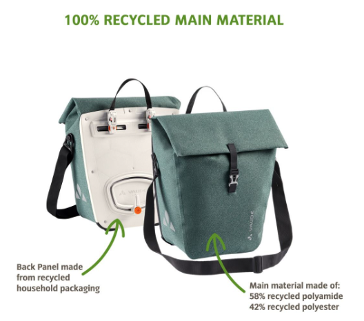Het bijzondere aan de Recycle Pro Single fietstas is dat deze fietstas volledig gerecycled is. Alle bevestigingsonderdelen zijn gemaakt van gerecycleerd plastic.