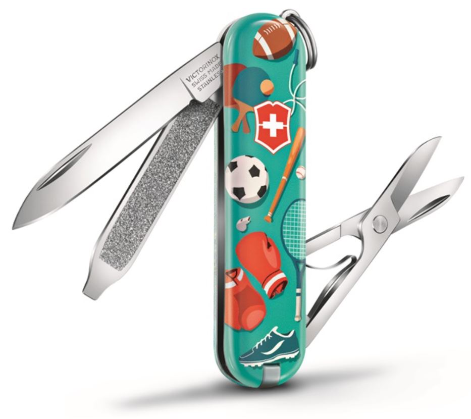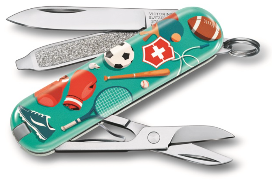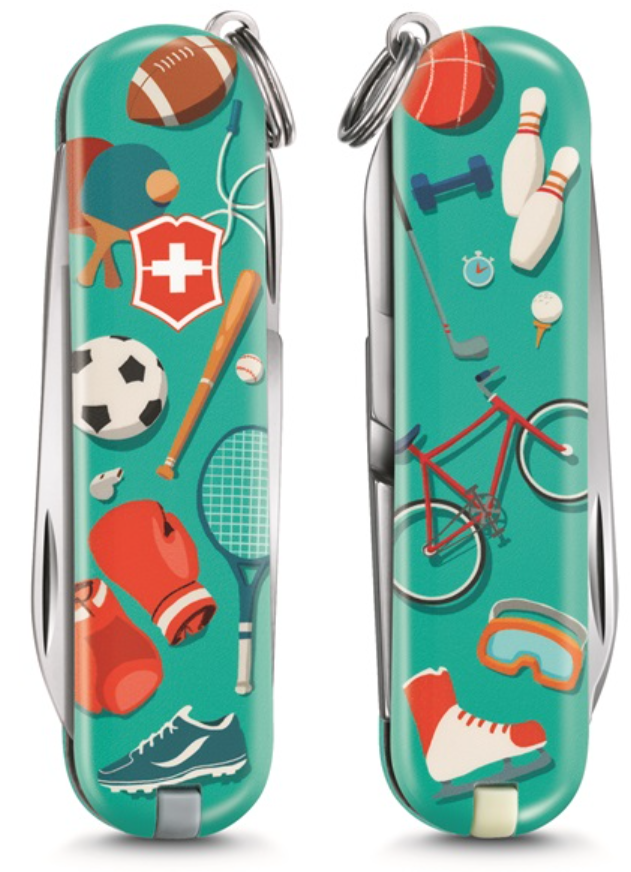 Het Victorinox Sports World 7f. zakmes heeft een speciaal ontwerp. Dit zakmes is namelijk onderdeel van een Limited Edition. Dit mes is breed inzetbaar en goed te gebruiken bij verschillende activiteiten zoals knutselen, kamperen of picknicken. Dit mes is voorzien van verschillende lifestylefuncties. Zo heeft dit mes onder andere een klein mes en een schroevendraaier.